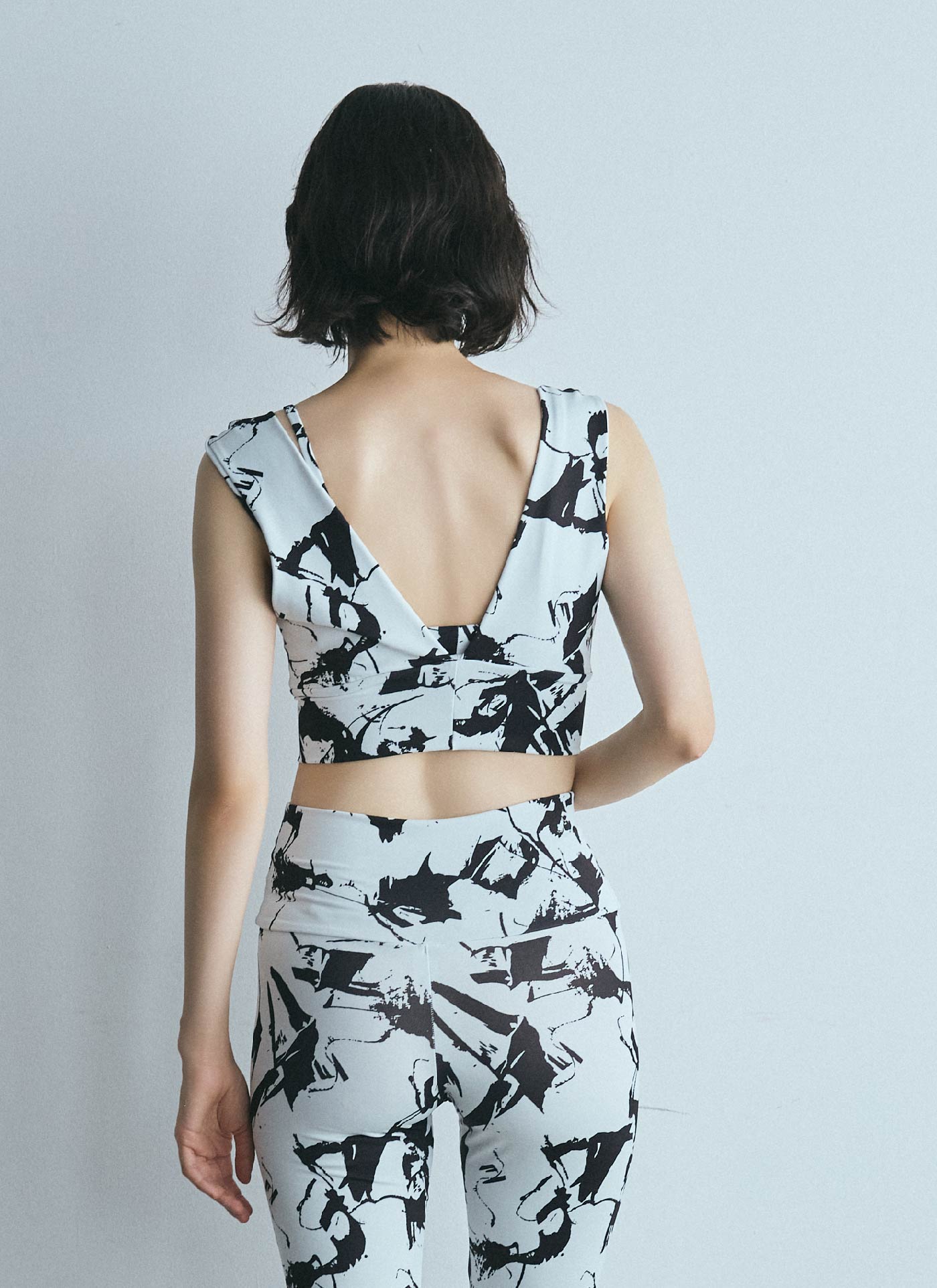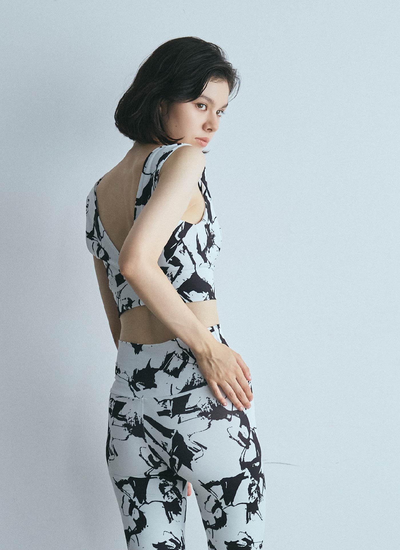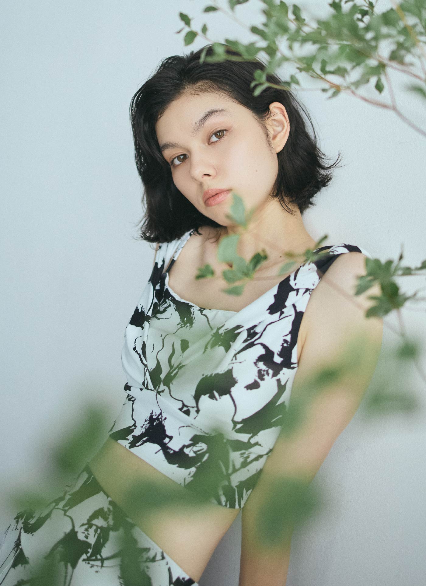 ショルダーツイストのレイヤード布がアンダーでドッキングされており、気になる脇のくいこみなどをカモフラージュ。