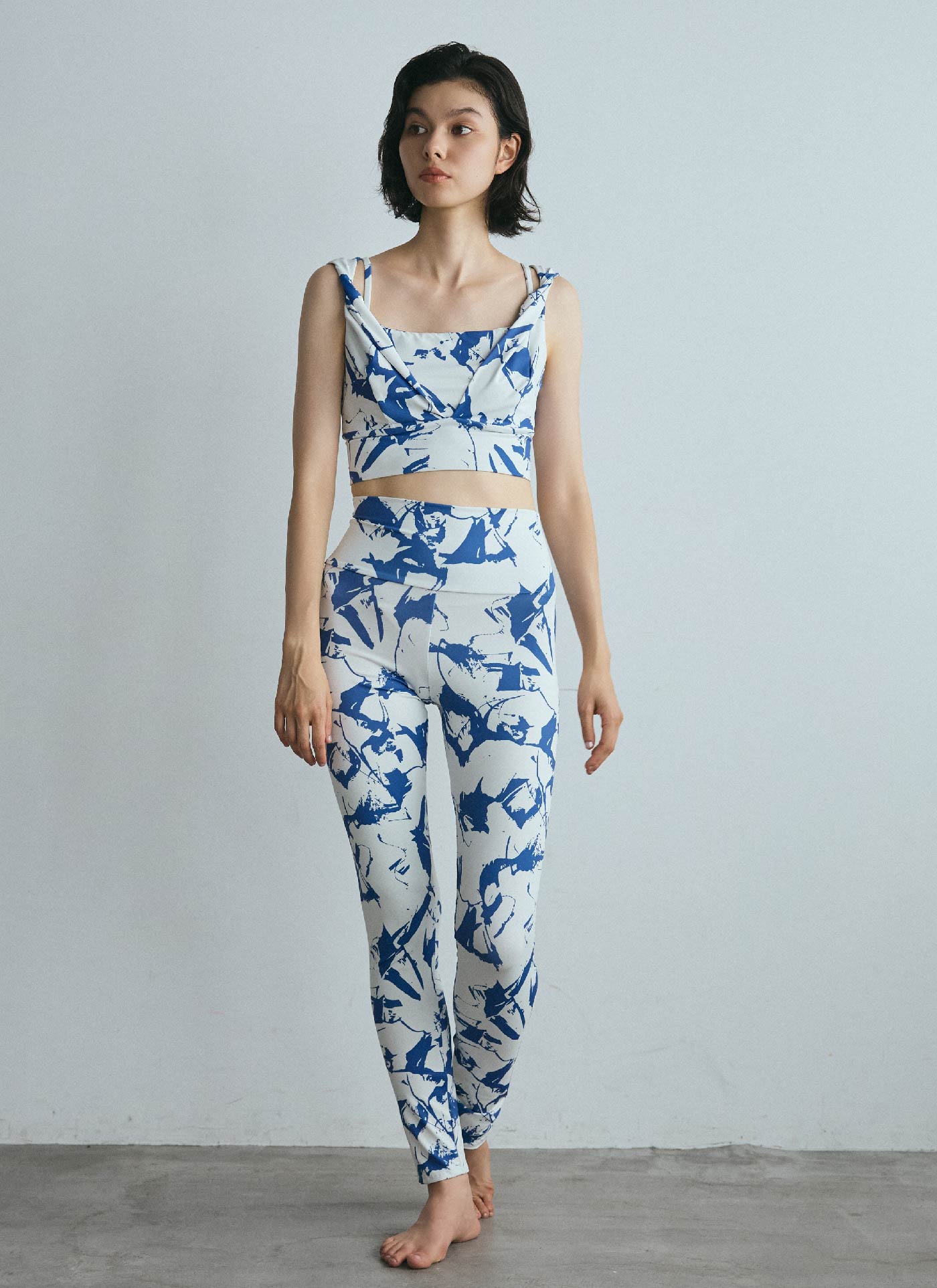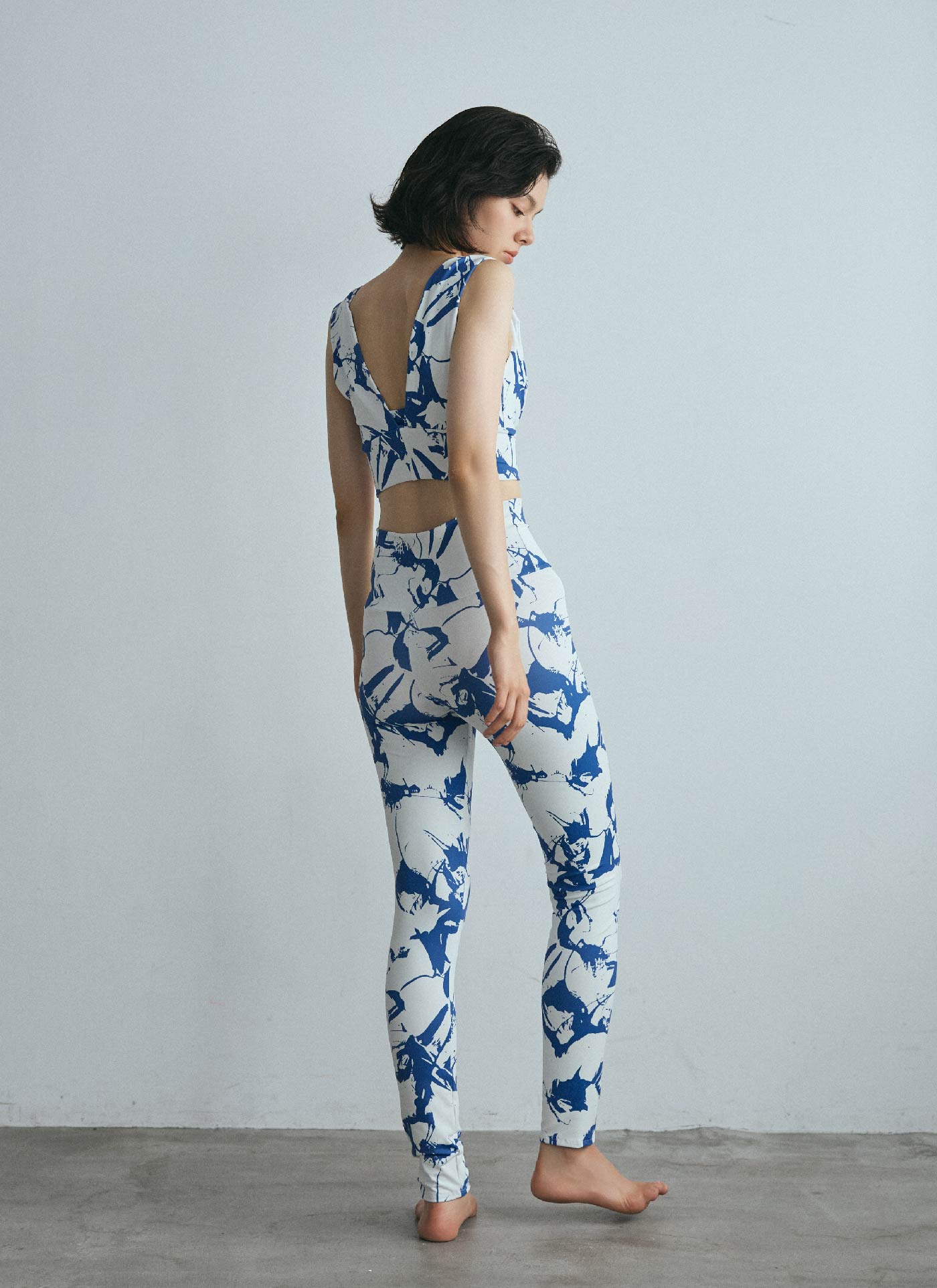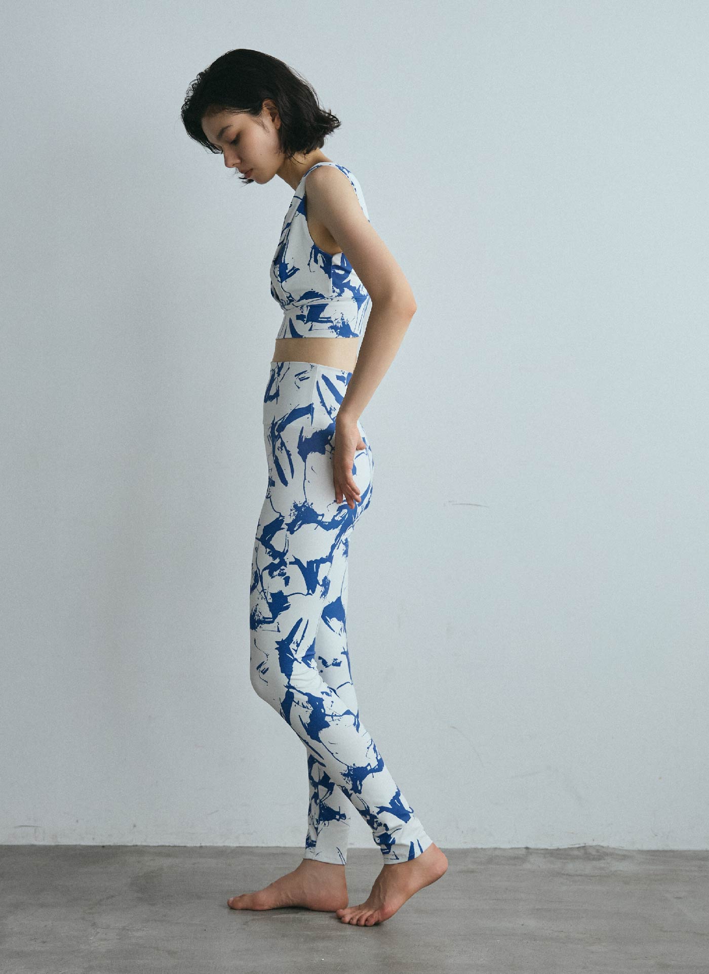 シンプルなパターンにモードなインクマーブルのプリントがひきたつレギンス。