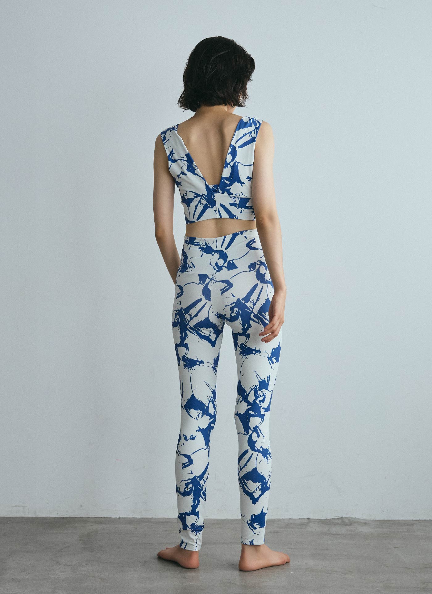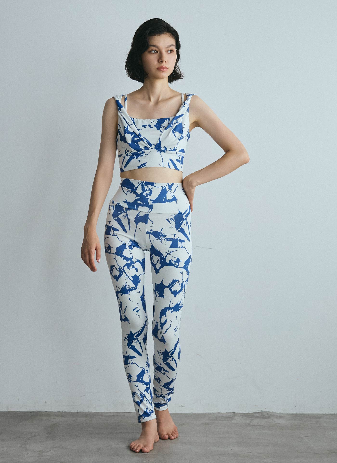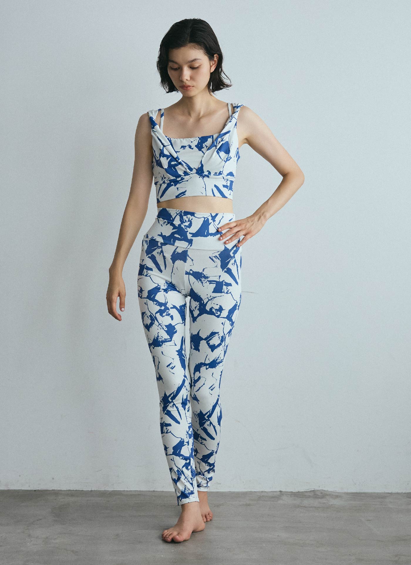 シンプルなパターンにモードなインクマーブルのプリントがひきたつレギンス。