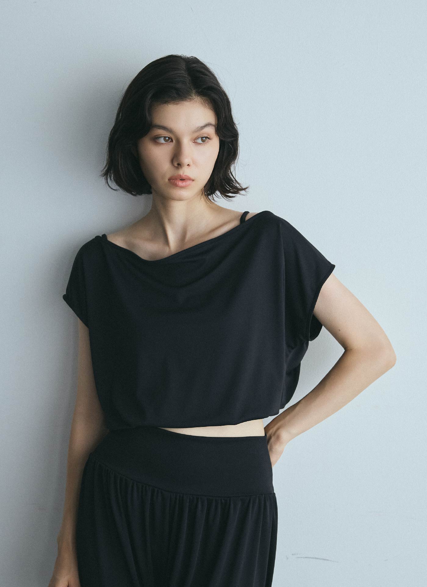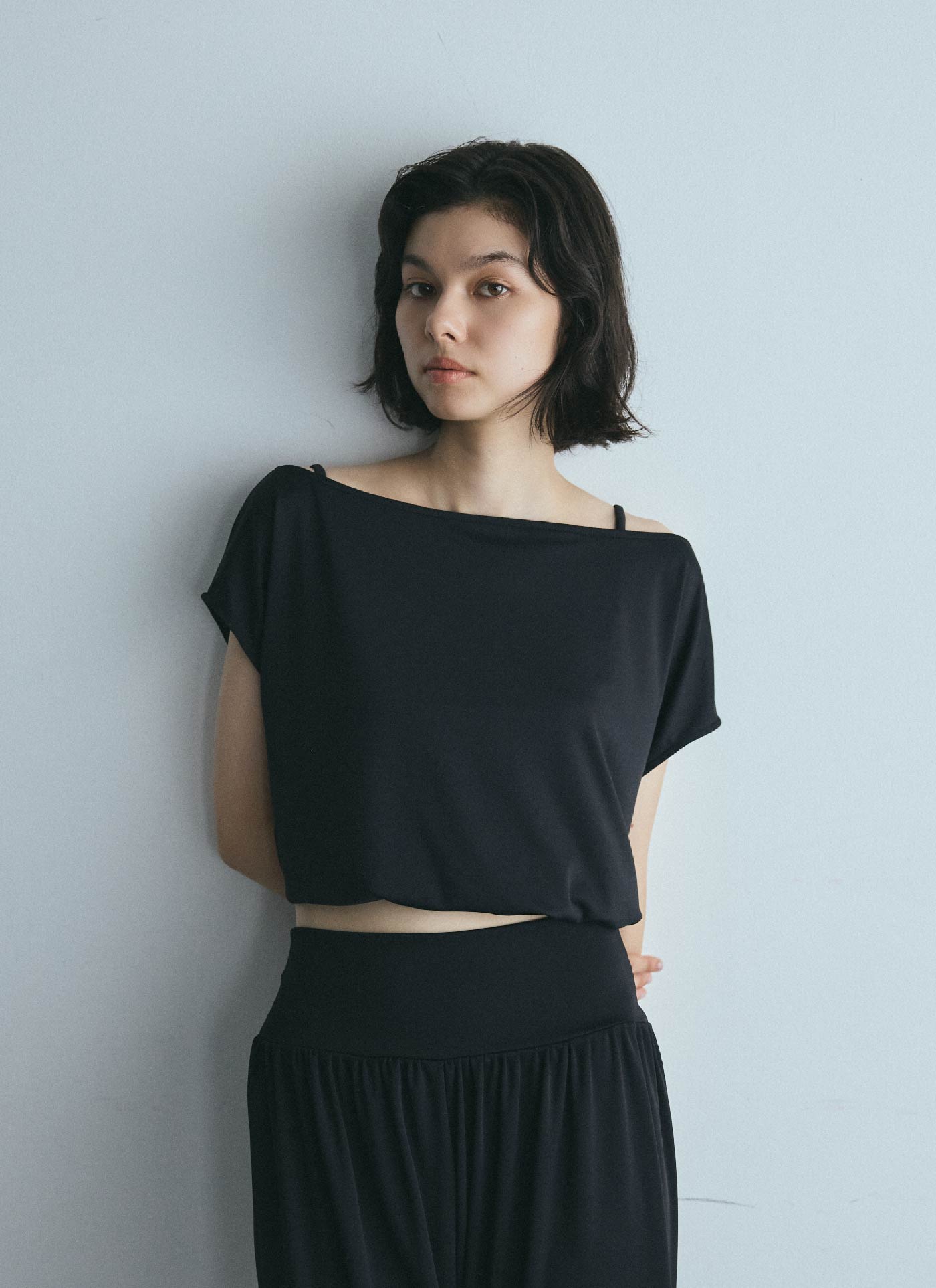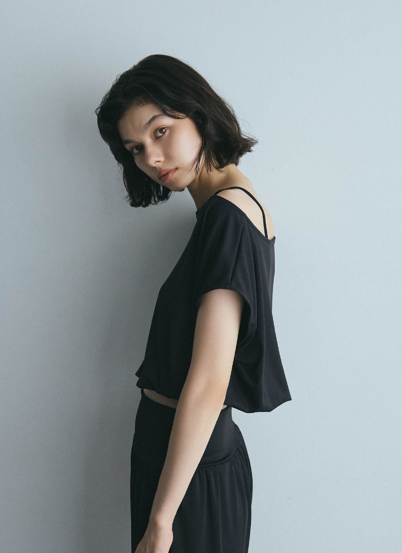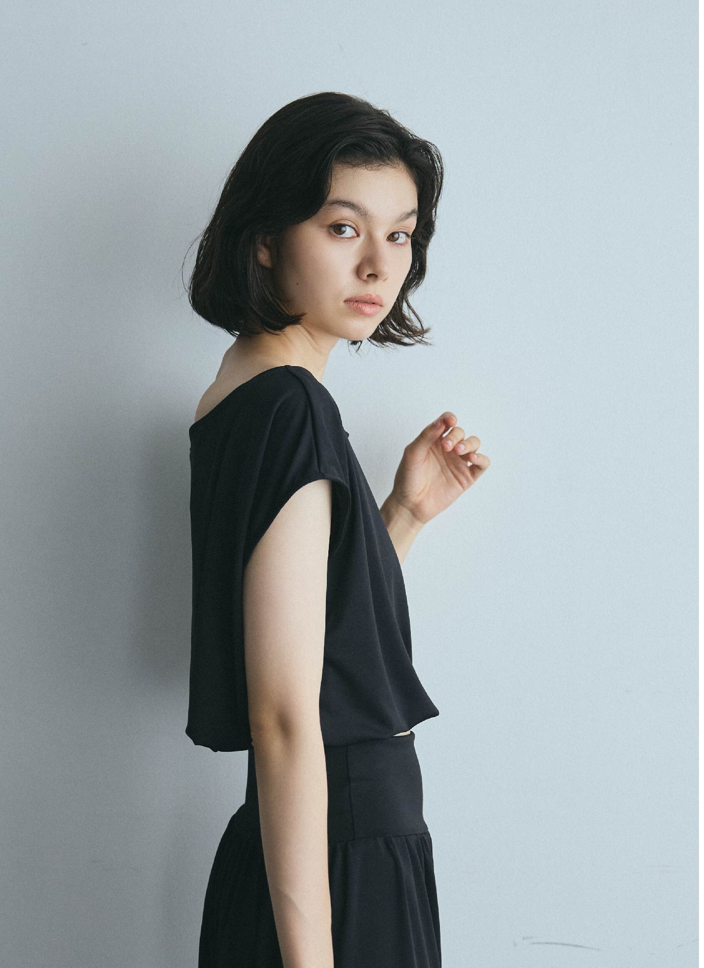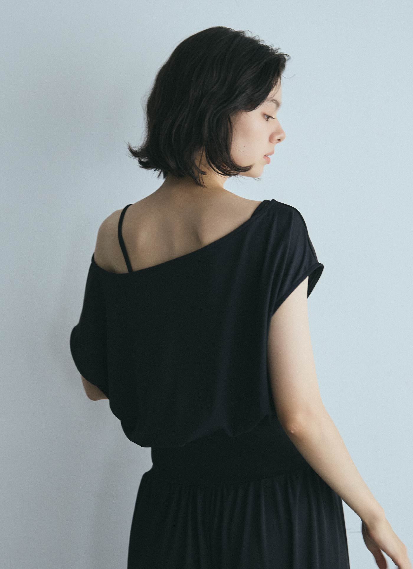 ショルダーラインが美しく見えるよう計算されたカットで鎖骨を演出